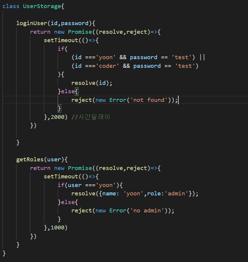 getRole의 경우 user라는 값을 받고 그값을 비교해서 resolve를 반환할지 reject를 반환할지 결정된다.