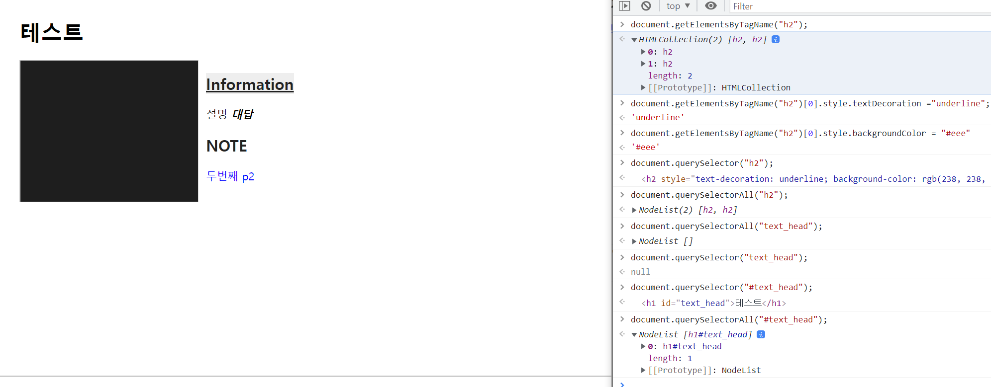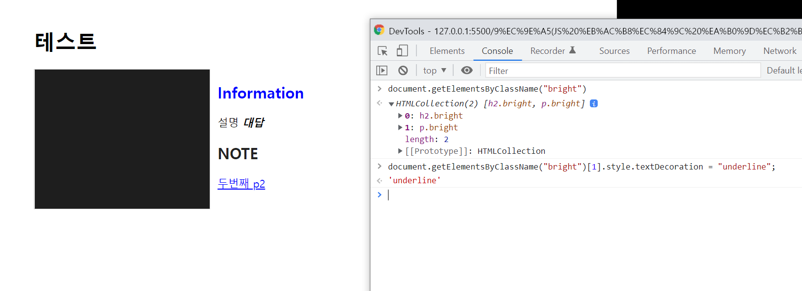 2개일 경우 다음과 같이 HTMLCollection으로 반환한다 접근 방법은 배열 index 접근하듯이 하면 된다.