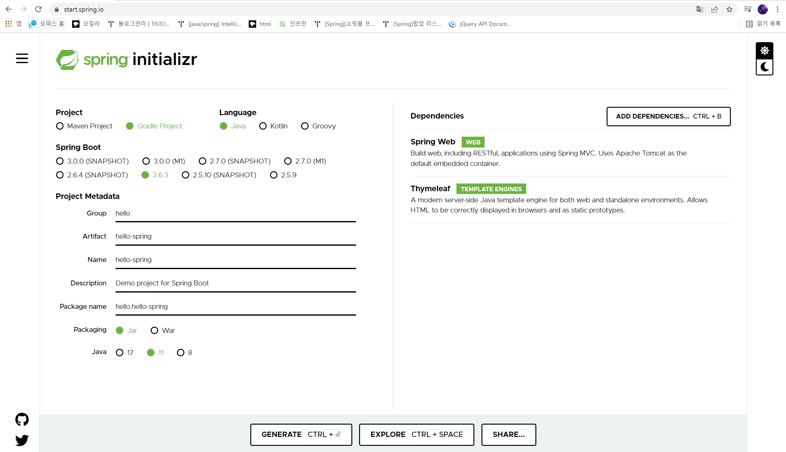 해당 사이트는 spring boot 기반으로 프로젝트를 만들어주는 사이트 입니다.