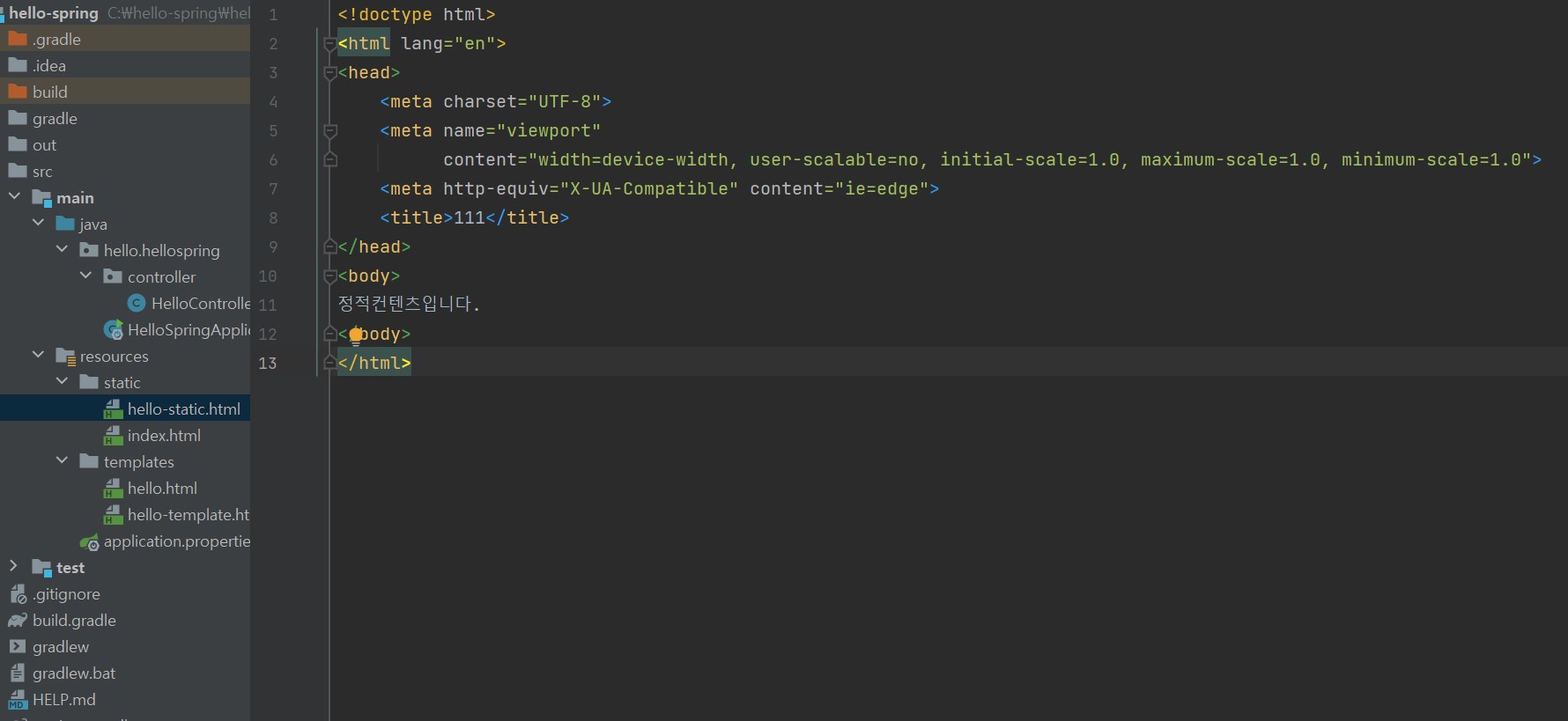 위의 컨트롤러는 hello-template를 리턴하게 된다.