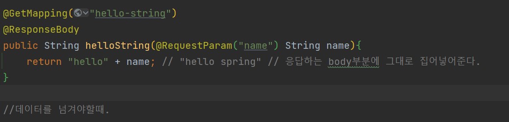 3. @ResponseBody 태그가 붙어있는것을 확인 [HTTP Boby 에 문자내용을 직접 반환]