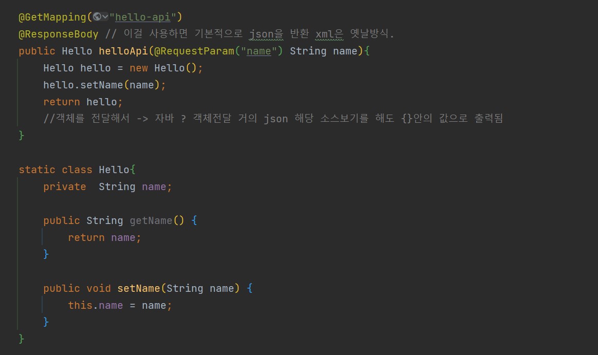 위의 내용과 다른점은 return 값이 hello 라는 객체라는 점이다.