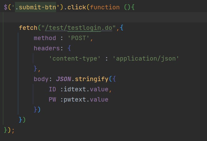 받아온 값을 -> fetch로 전달한 JSON 형식의 데이터