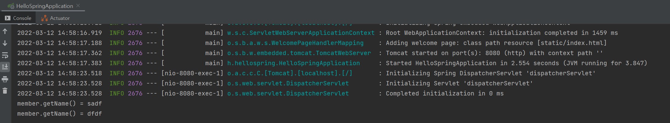 System.out.println("member.getName() = " + member.getName());