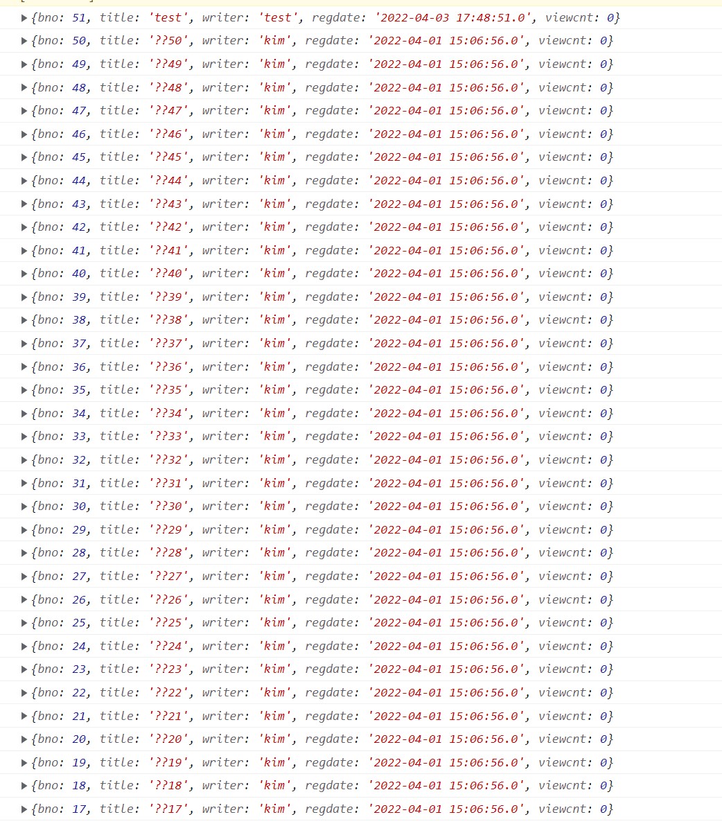 해당 쿼리를 실행하고 그 응답을 BoardVO에 선언된 양식의 list 형식으로 반환한다.