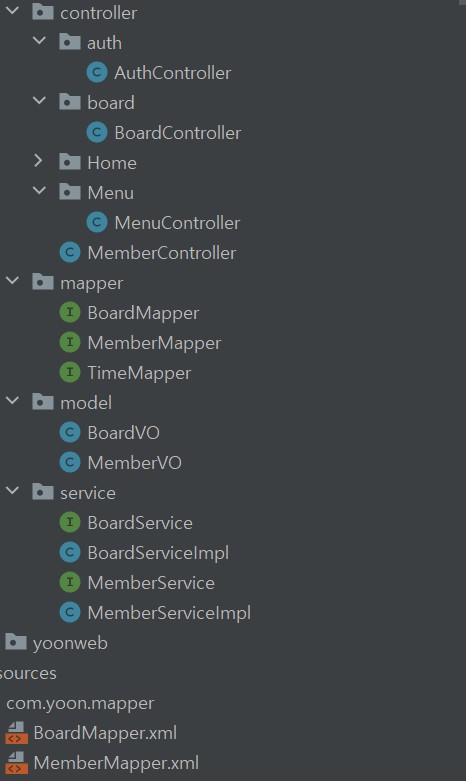 board에 관한 controller 와 VO 객체 (DTO 로 해도 무방함) Serivce, mapper 부분 파일 생성.