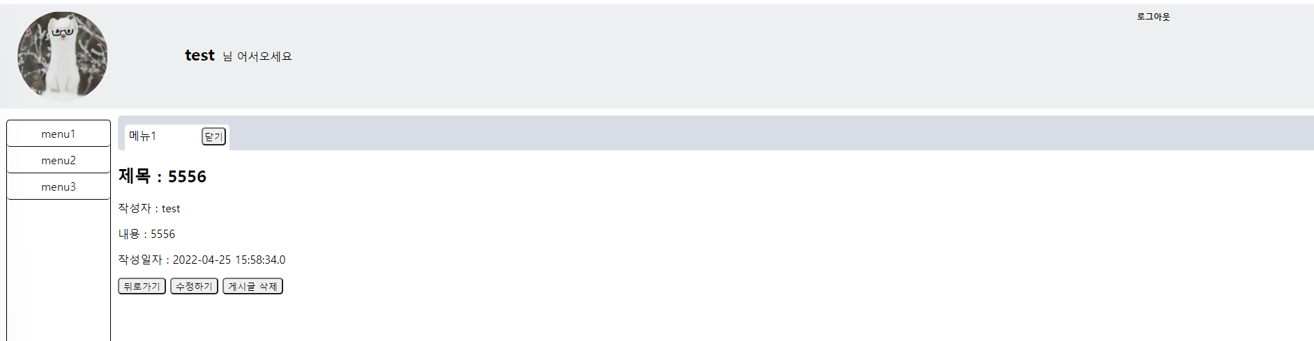 해당 게시글의 내용이 나오도록 한다.